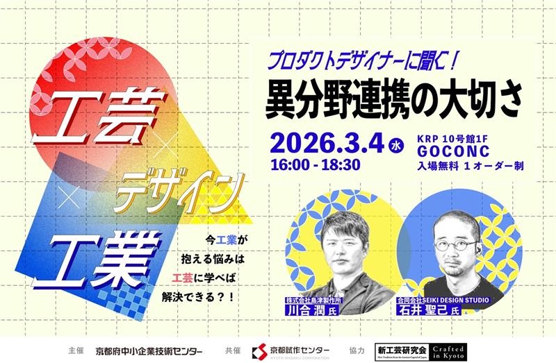 本講演では、これまでの協業事例に加え、京都を拠点とするフリーランスデザイナーとして、工芸と工業をどのように接続し領域を横断していくのか、今後のものづくりやブランディングの視点と実践についてお話しいただきます。